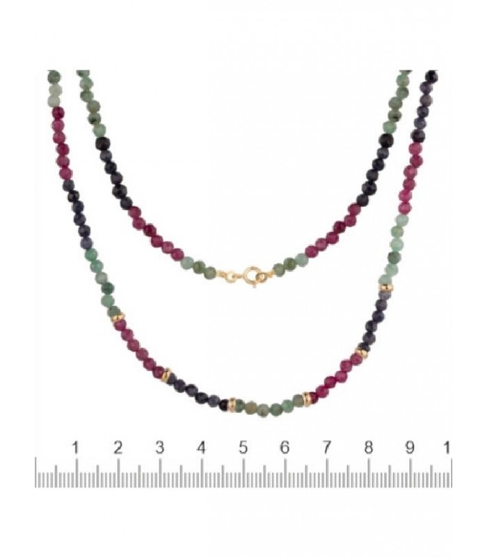 Gargantilla piedras naturales de oro de 18 kilates Rubi Zafiro Azul y Esmeralda.